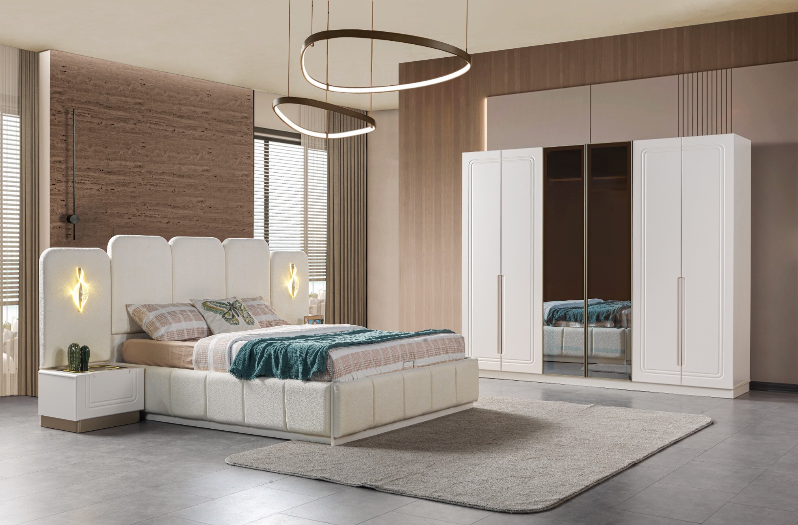 | TAKIM İÇERİĞİ | Gardırop – Şifonyer – Karyola (Bazalı), Başlık – 2 Komodin |