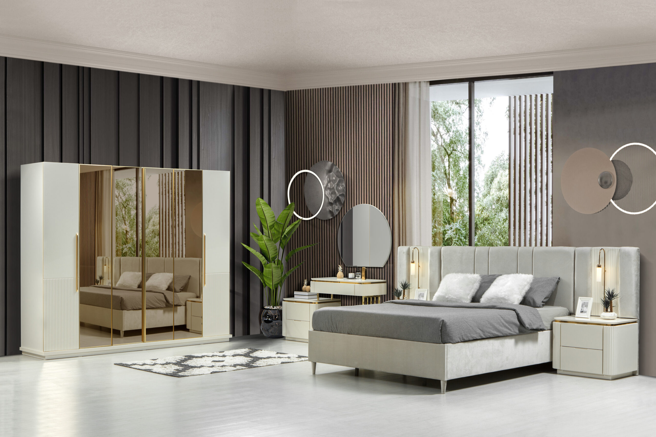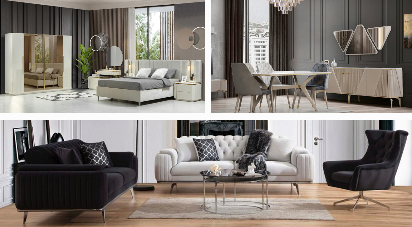 | TAKIM İÇERİĞİ | Gardırop – Şifonyer – Karyola (Bazalı), Başlık – 2 Komodin |
