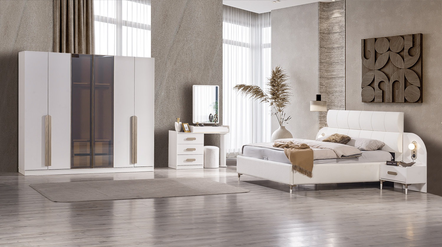 | TAKIM İÇERİĞİ | Gardırop – Şifonyer – Karyola (Bazalı), Başlık – 2 Komodin |
